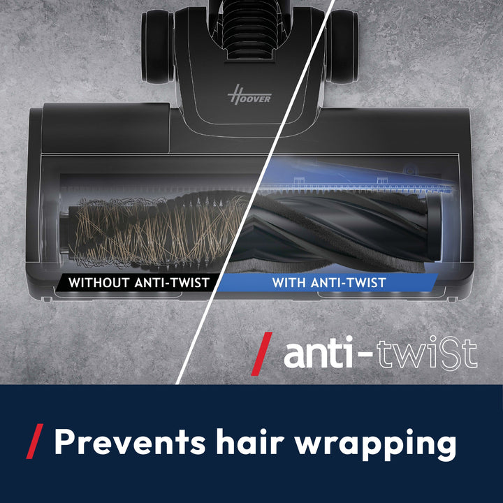 Anti-Hair Wrap Technology: The vacuum’s brush bar features an integrated comb to prevent hair tangling and other knots.